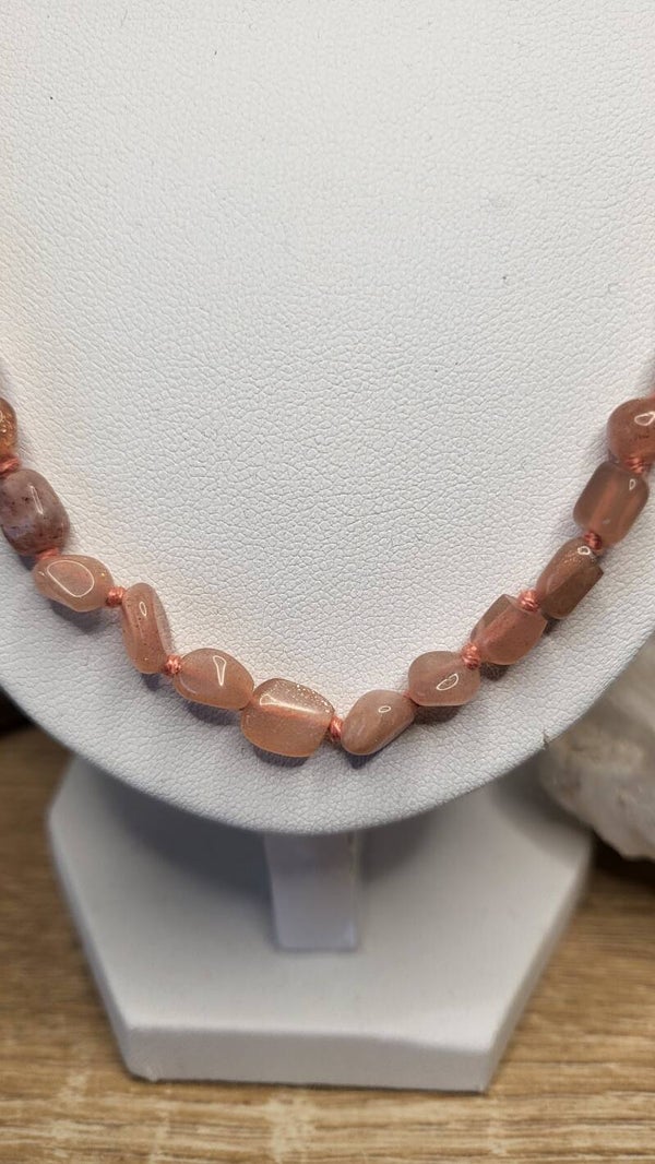 Collier Galet en Pierre de Lune orange