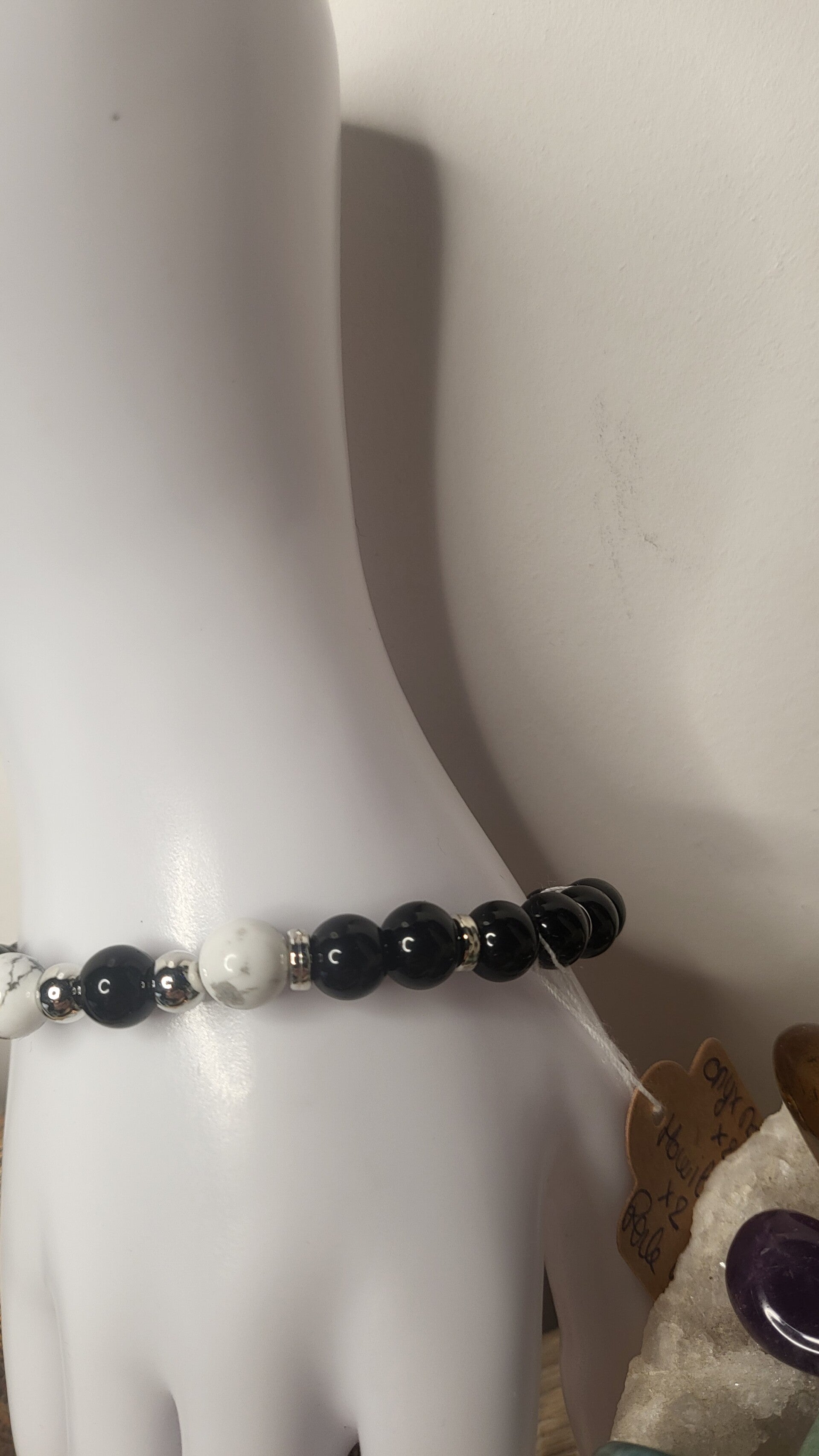 Bracelet ONYX noir / Howlite central séparateur de perles 8mm