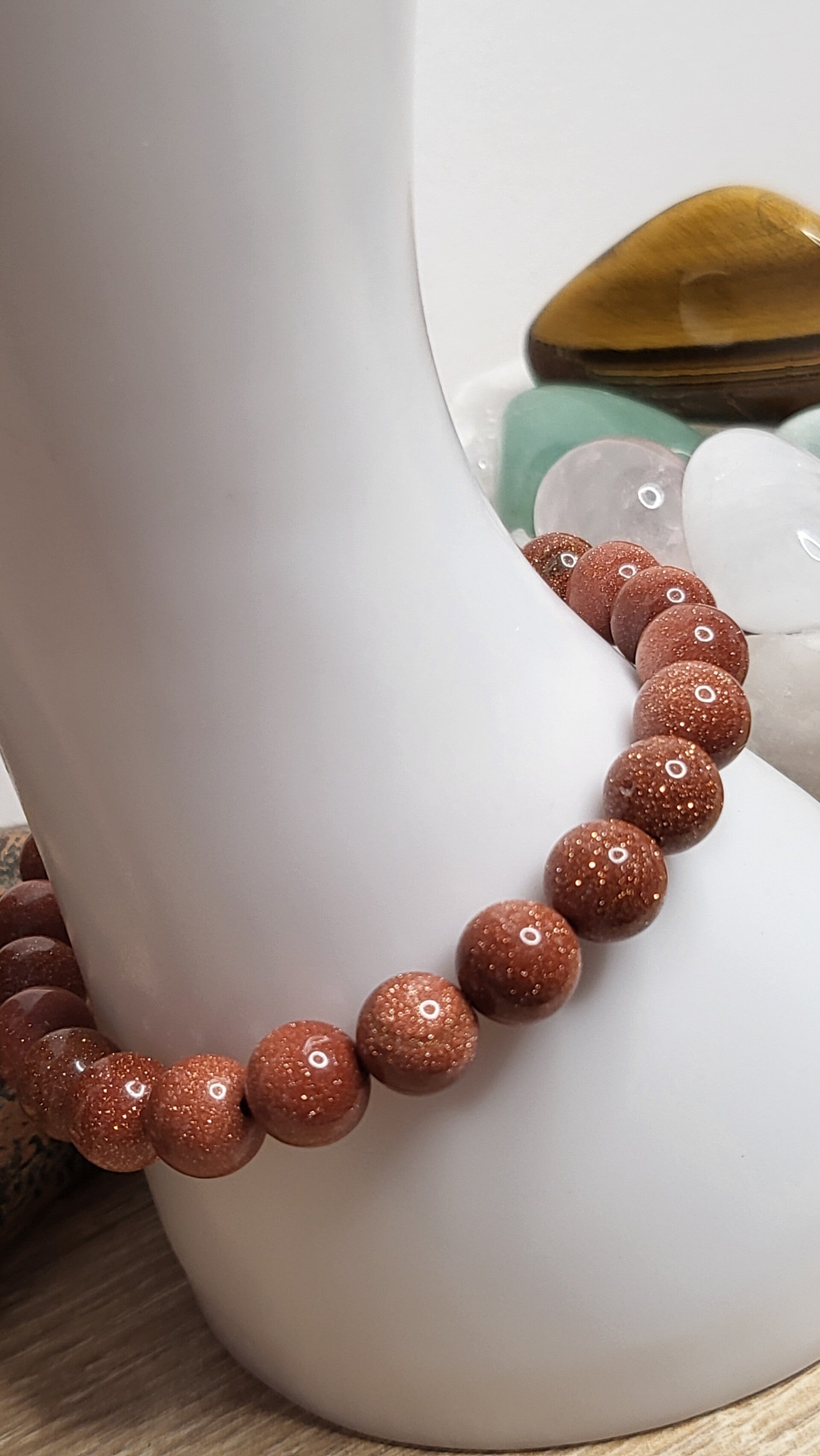 Bracelet de 24 perles de verre "sable doré" Scintillante au soleil (de 8mm),