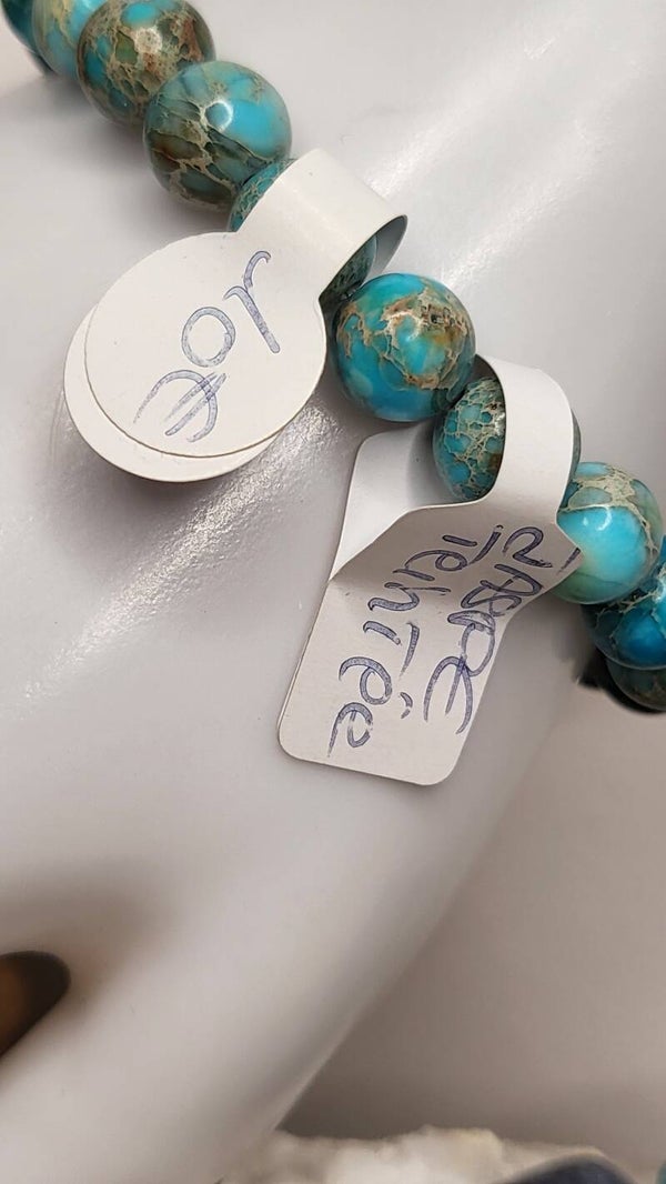 Bracelet standard de 24 perles en Jaspe véritable de 8mm. "Attention teintée" sédiment océanique.