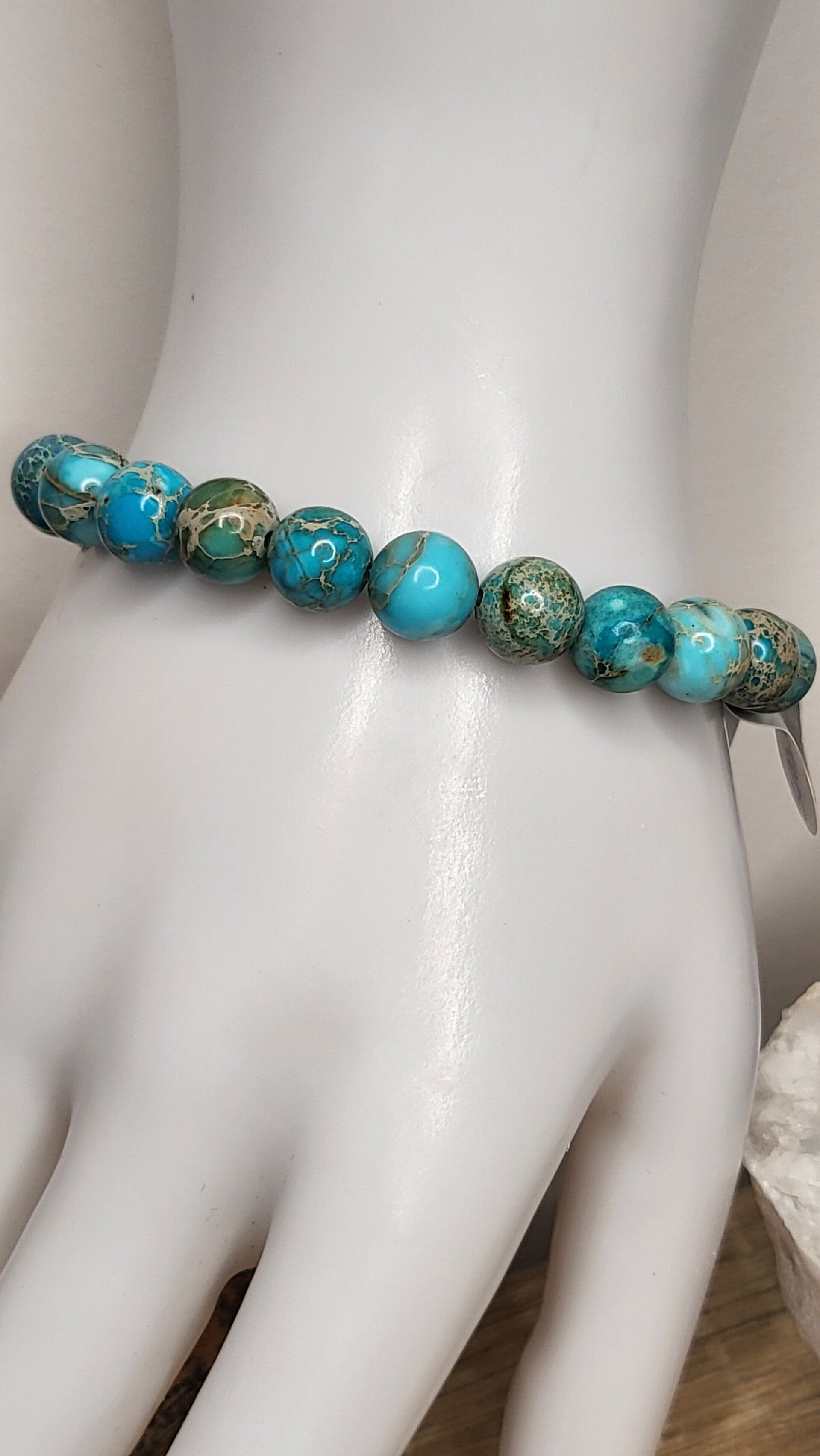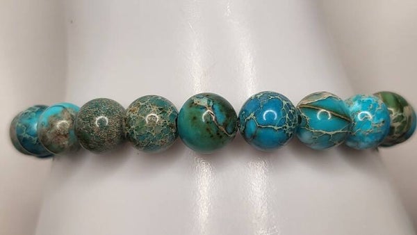 Bracelet en véritable Jaspe de 8mm "Attention teintée" Sédiment Océanique"