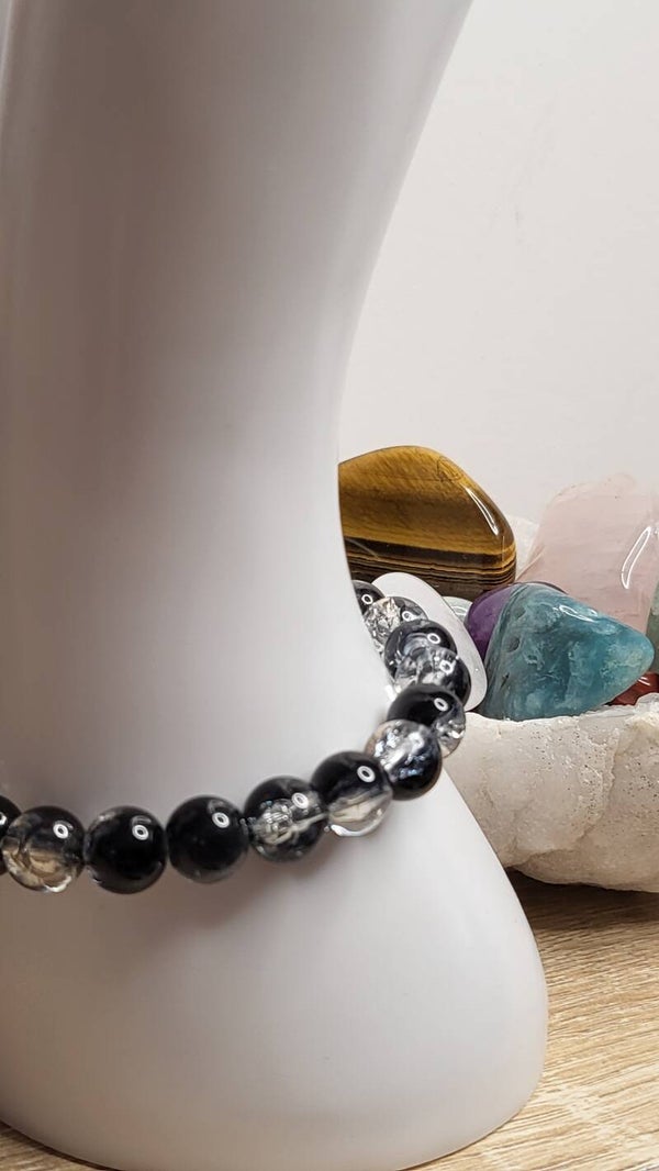 Bracelet standard de 24 perles en verre scintillante au soleil de 8mm. (violette-noir)