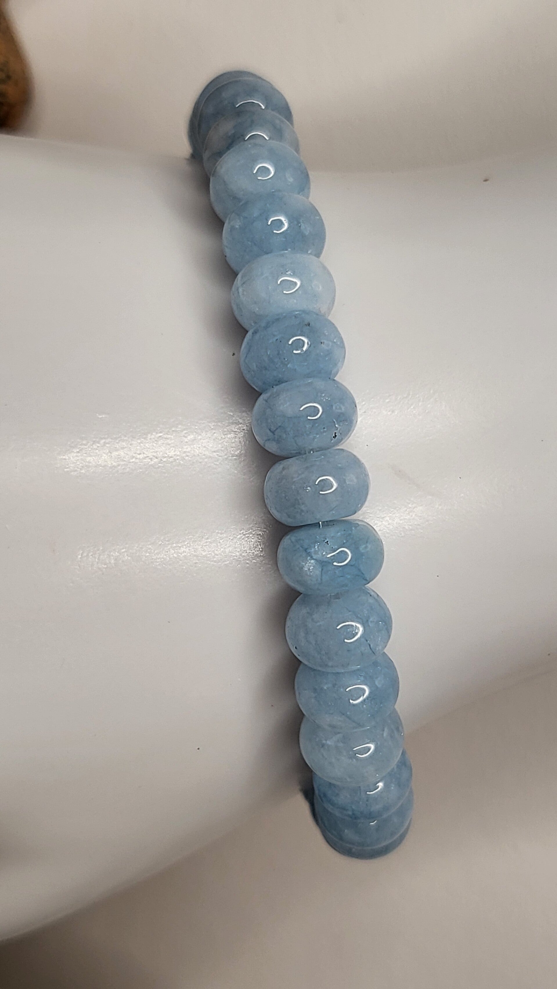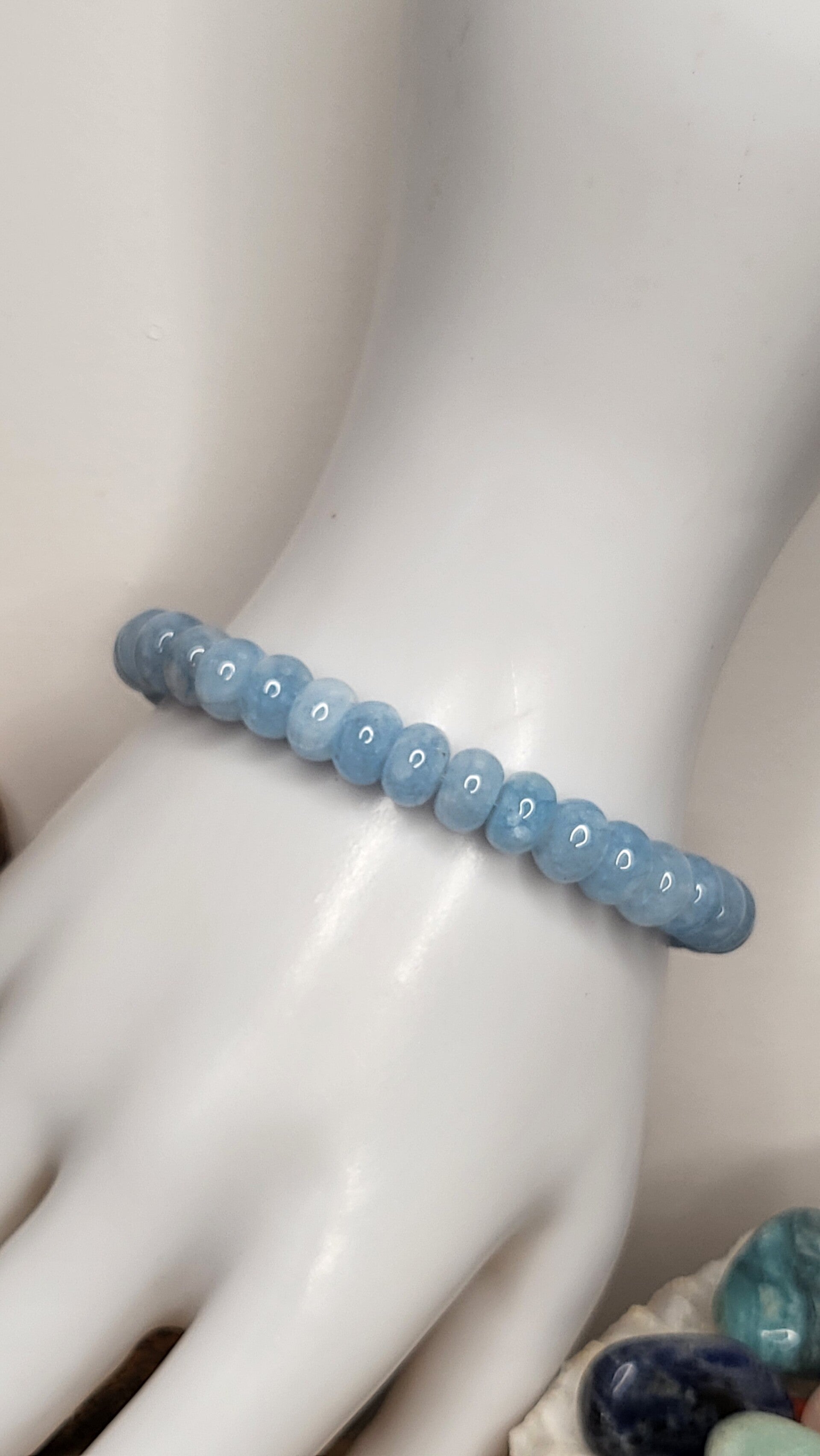 Bracelet standard de 35 rondelles en Aquamarine- Angélite véritable de 8mm.