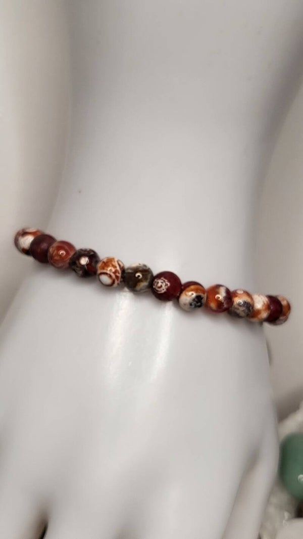 Bracelet standard de 30 perles véritable Agate Mexicaine de 6mm.