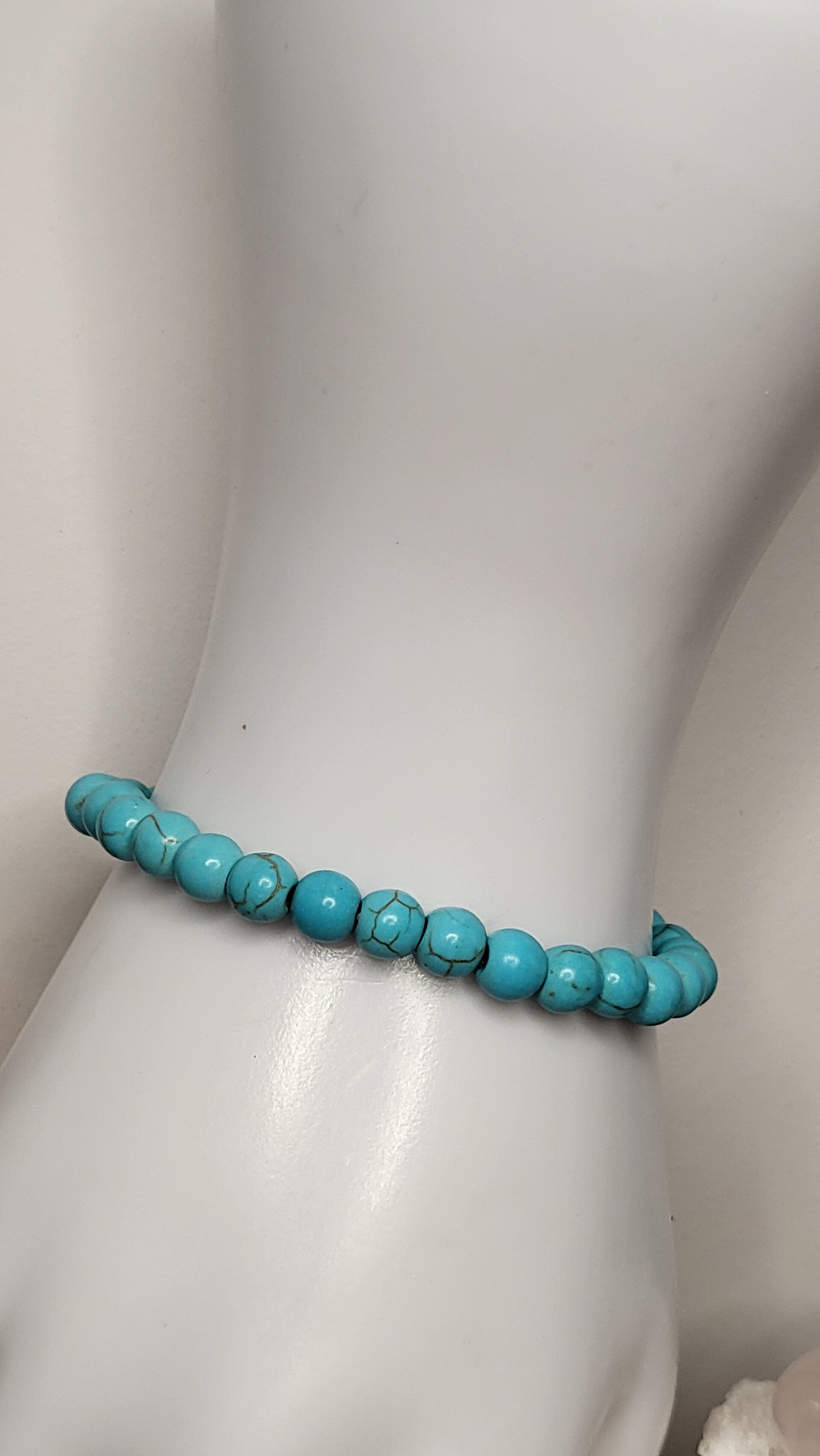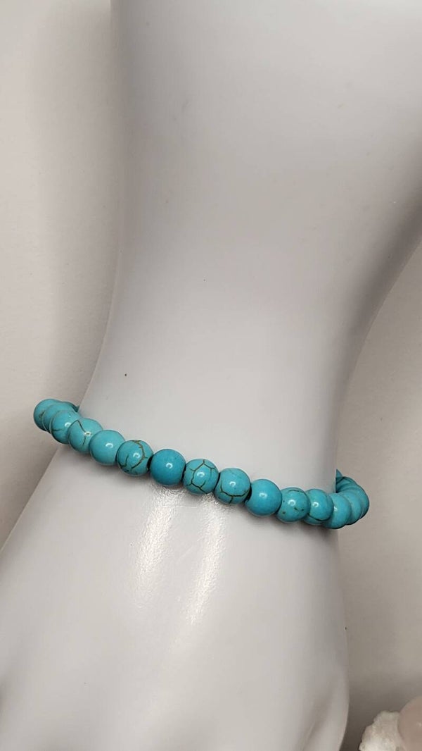 Bracelet standard de 30 perles véritable Turquoise de 6mm.