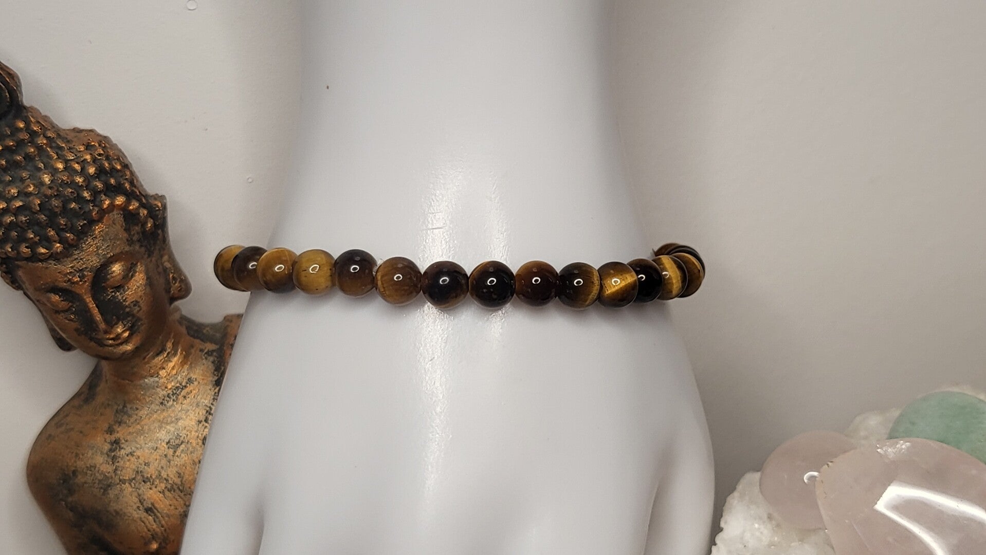 Bracelet standard de 30 perles véritable Oeil de tigre brun de 6mm.