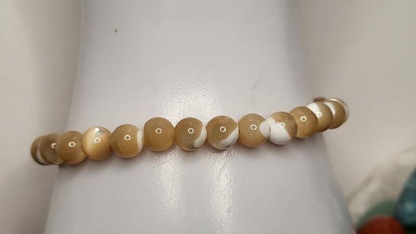 Bracelet de 31 perles de nacre naturelle de 6mm. Montage sur fil élastique transparent Jewellery. Taille standard 18cm.